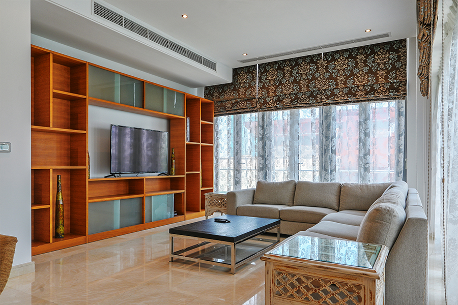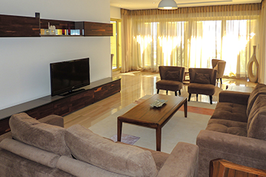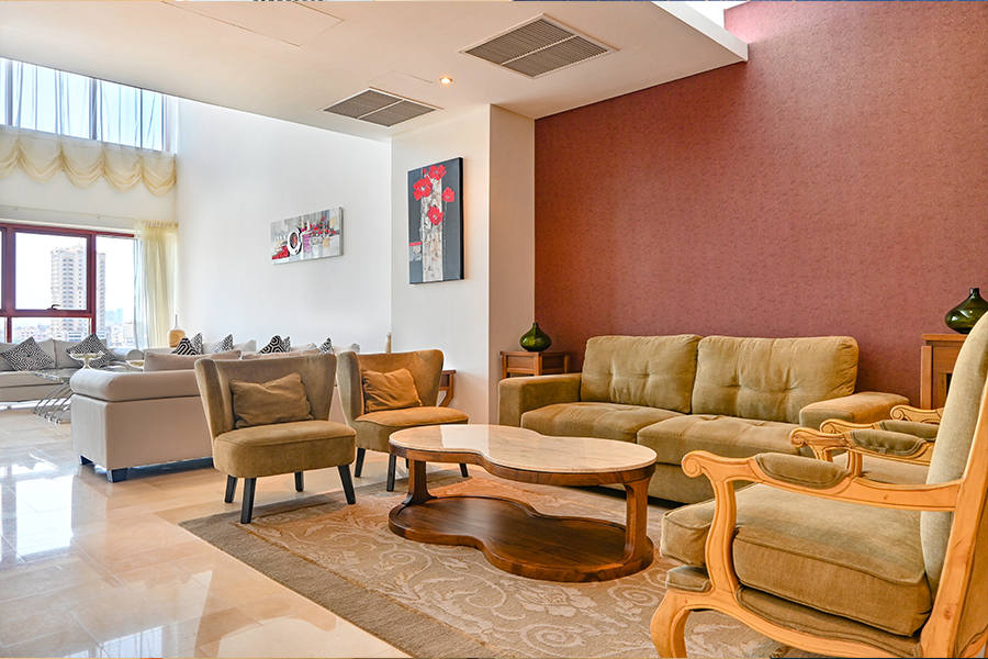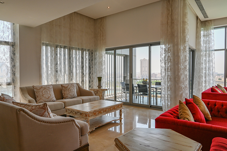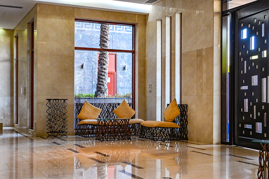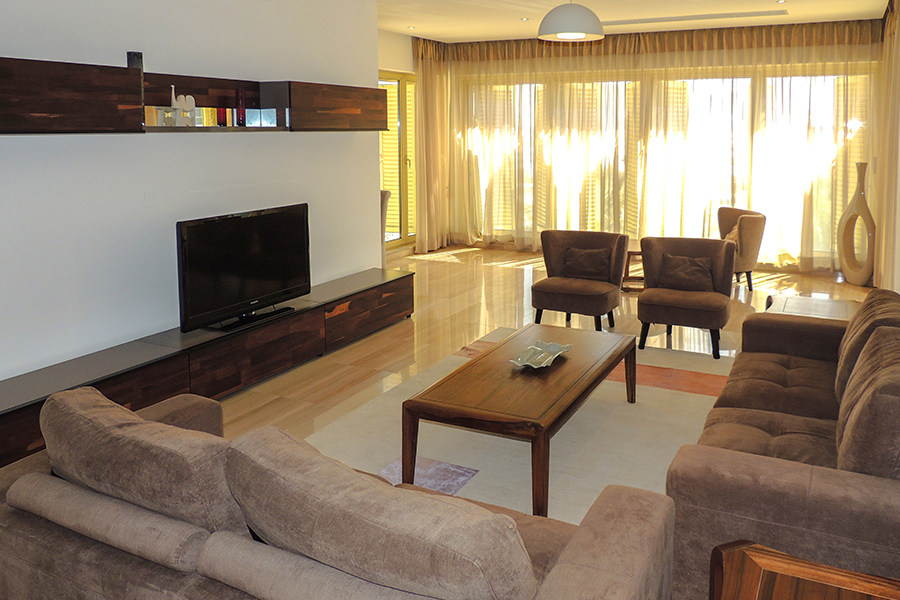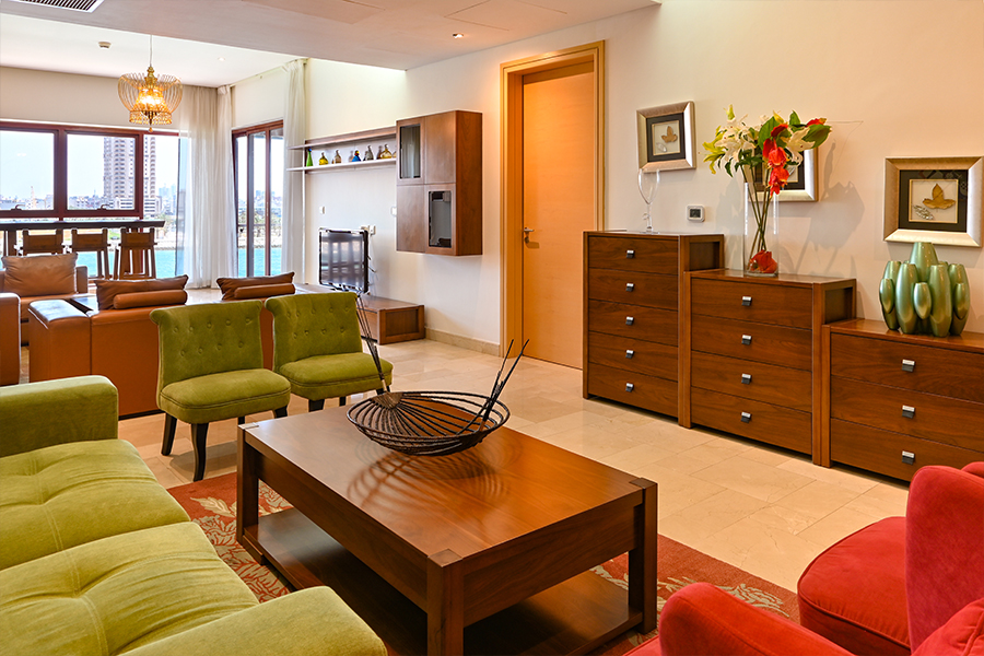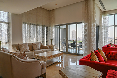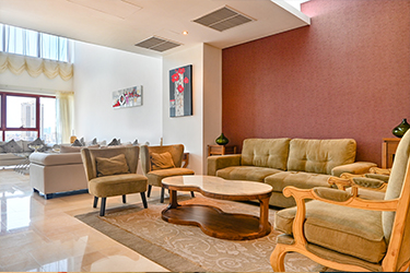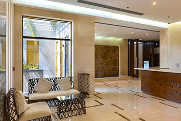 Maintenance free exterior with full granite façade, combined with aluminum, sun breakers and tinted double glazed windows. The main entrance rivals with the most luxurious five star reception halls. Fully tiled with either Cream Marphil or Calcatta first quality marble, it features an American walnut impressive desk behind which a round the clock concierge is delighted to serve the residents.