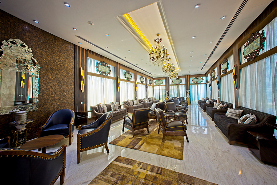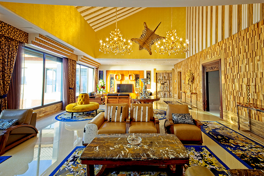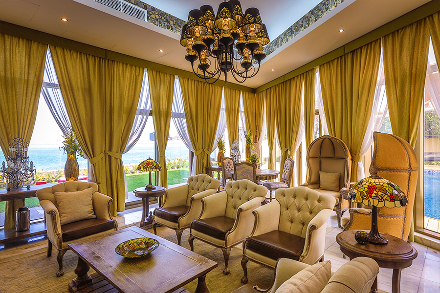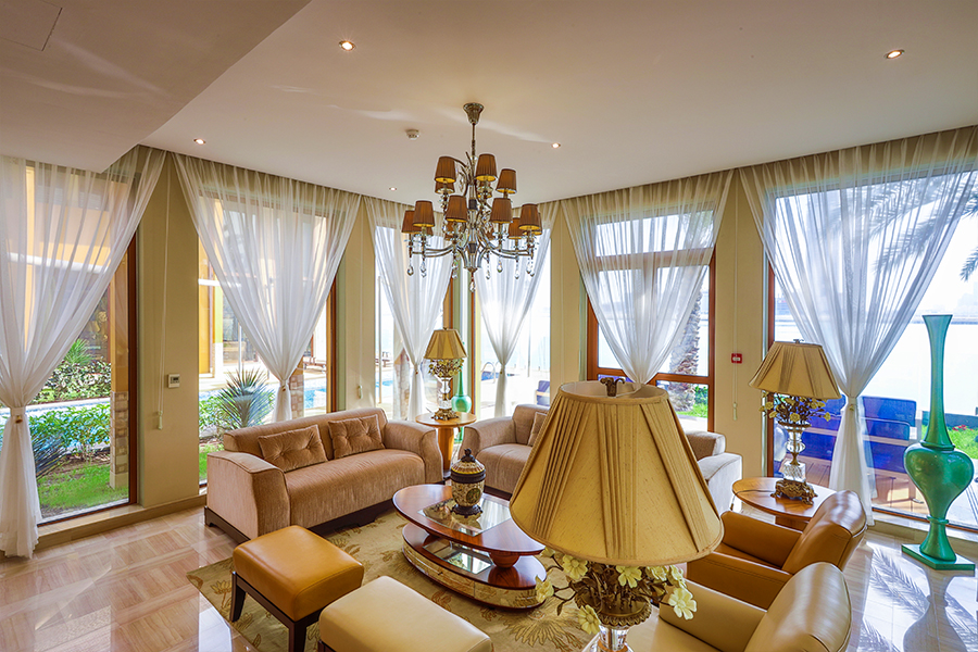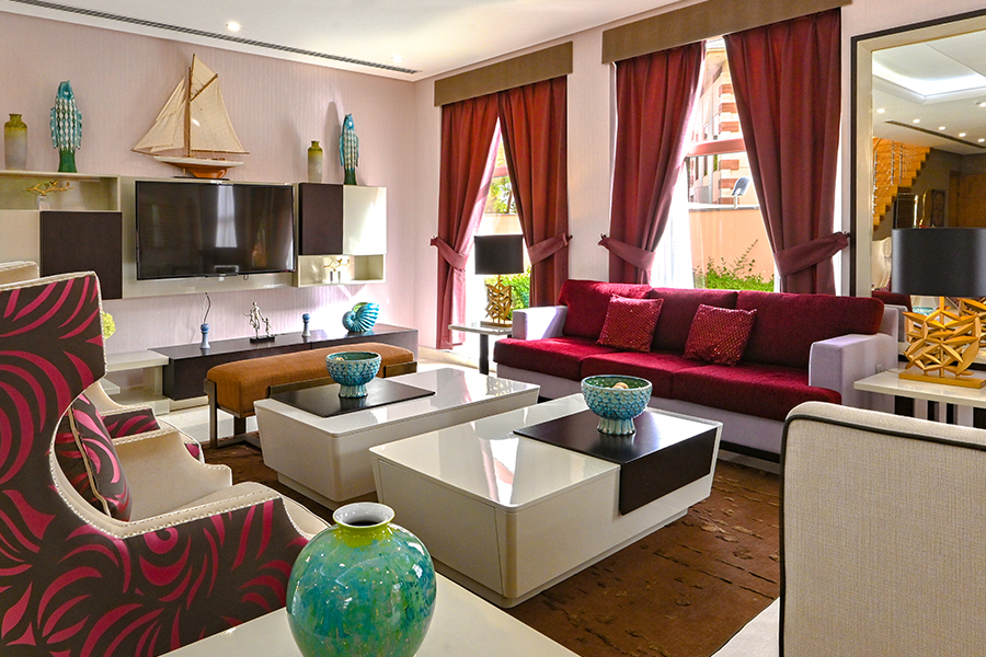 Exuding a Levantine meets North African allure, the striking appearance of the villa from the exterior is enhanced by the use of the finest slate for its roof and high quality granite for its facades, walls, pedestrian walkway andstepping stones. The villa enjoys its own garden, complete with wooden deck terraces, a gazebo, water features and swimming pool tiled in Bisazza style mosaic.