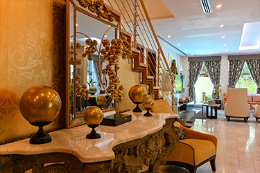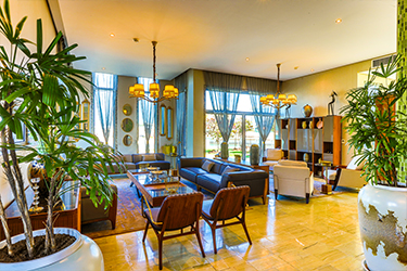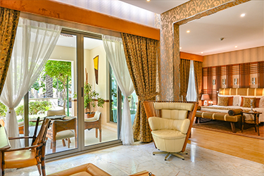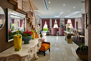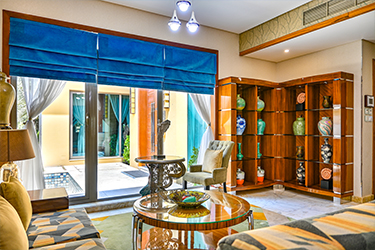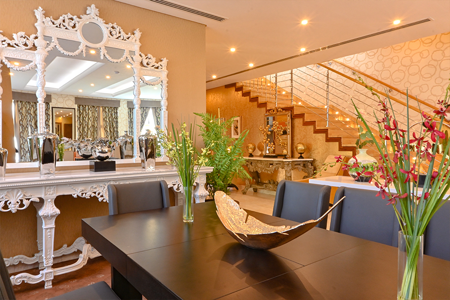 A lift provides convenient access to the upper storey, where the bedrooms and formal lounge enjoy a high roof top level. Marble flooring is used throughout the villa’s living spaces, while the bedrooms enjoy parquet flooring.