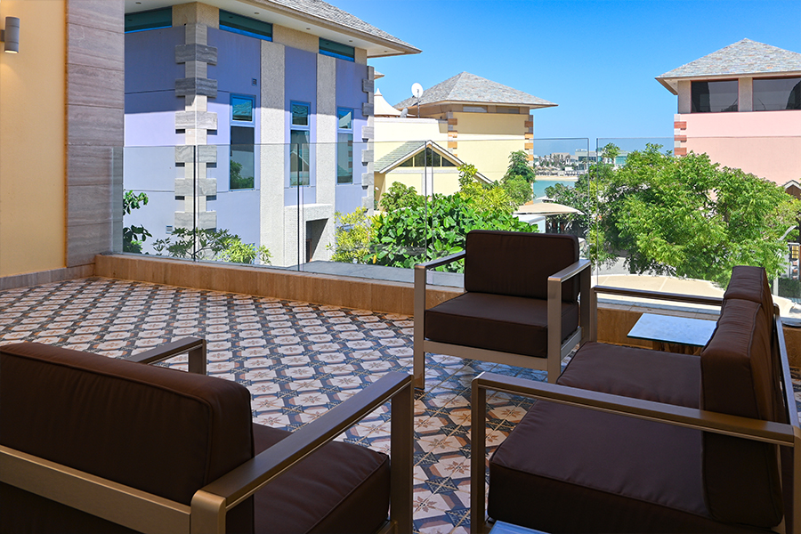 The emphasis on luxurious quality is evident in the Grohe fixtures and kitchen from German brand Alno, as well as the high quality granite used on exterior facades, pedestrian walkway and stepping stones. In the villa’s private gardens, residents can pass their time amid the gazebo, wooden deck terraces, or swimming pool tiled in Bisazza mosaic style and overlooking the open sea or lagoon. The latter is surrounded by its own sun deck with palm tree and shaded by a canopy. Throughout the gardens artistic water features enchant.