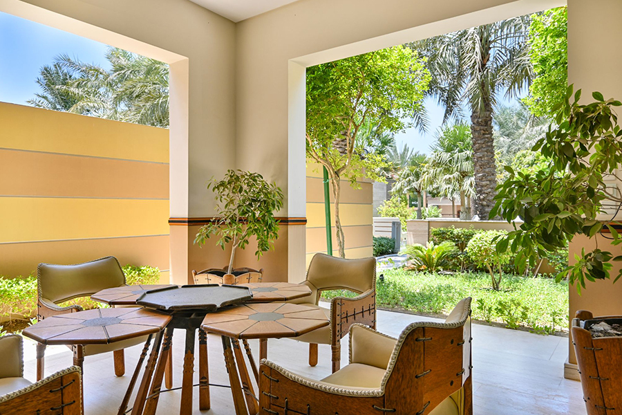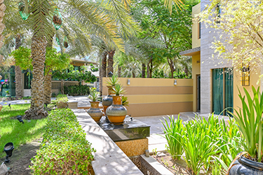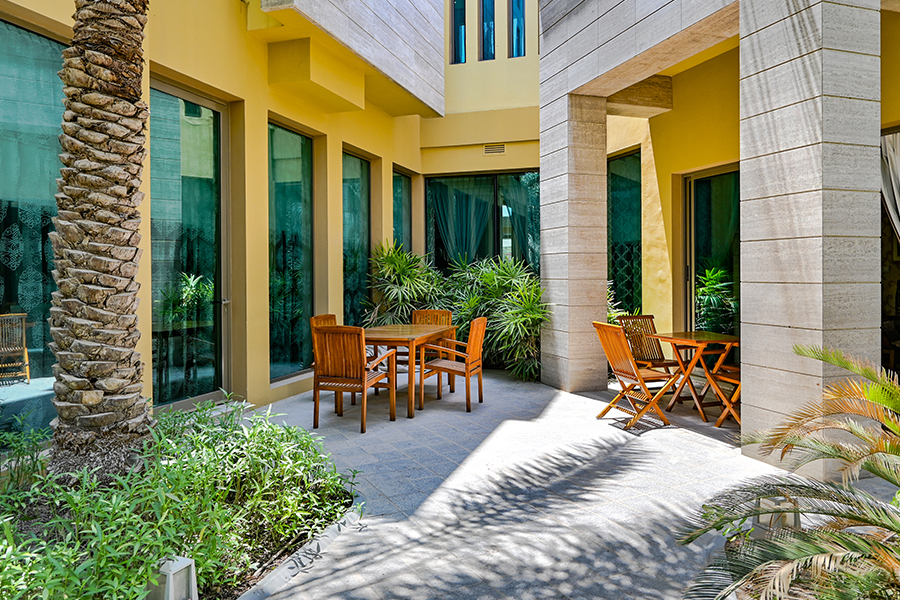 One of the major features of this neo modern villa is its spacious majlis room with private terrace. Marble flooring is used throughout the villa’s living spaces, while the bedrooms enjoy parquet flooring. The emphasis on luxurious quality is evident in the Grohe fixtures and kitchen from German brand Alno, as well as the high quality granite used for the villa’s facades, pedestrian walkway and stepping stones.