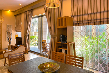 The gentle lapping water on the pristine coral beach draws you from your reveries as the cool breeze ruffles the palm fronds above you that can only accentuate the tranquility that is your home at Reef Island's Clusters. From your garden drink in the serenity of the morning whilst you contemplate an early morning dip in the luxurious sea water lagoon.